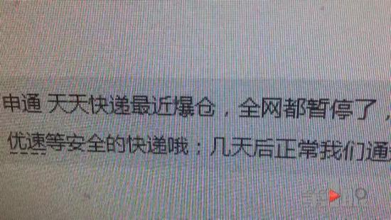 为了一探虚实,第1眼记者再次以网络商家的名义,联系空包公司的客服,表示还想购买空单号。然而,空包公司的客服却告诉记者,目前申通快递和天天快递的空单号,已经不能购买,至于原因,对方没有说明,只是说得到通知,暂停销售天天快递和申通快递两家公司的空单号,要等几天之后,才可以继续购买,而其余多家快递公司的空单号依然不受影响,可以继续购买。